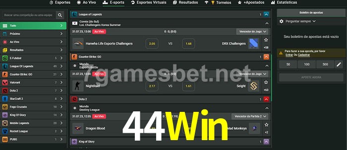 A aposta 44Win oferece aos jogadores a experiência mais conveniente de apostas em eSports!